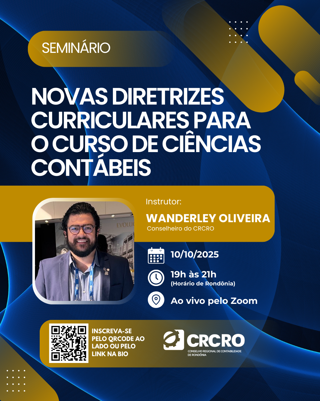 Para auxiliar universidades e docentes na implementação dessas mudanças, o Conselho Regional de Contabilidade de Rondônia (CRCRO) promoverá um seminário especial, conduzido pelo conselheiro Wanderley Oliveira. O evento acontece no dia 10 de outubro de 2025, das 19h às 21h (horário de Rondônia), com transmissão ao vivo pelo Zoom e retransmissão no canal do CRCRO no YouTube. A participação é gratuita, e o link de inscrição pode ser realizada através do link: https://www1.cfc.org.br/evento?E34